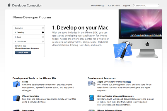 I collaborated with members of the web team to put together a new design of the iPhone Program pages which outlines the process by which new developers can get involved with ADC membership and iPhone application development.