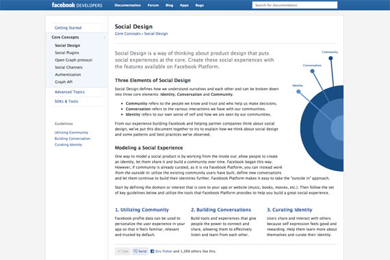 At Facebook, I was the "Social Design Evangelist" and a product designer. In addition to designing numerous aspects of Facebook.com - including News Feed, Friend Lists, the publisher, Insights and the entire developer site - I also defined and wrote the Social Design Guidelines and presented them to developers working on the platform.