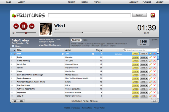 The result is a clean and simple user interface that displays album artwork, song lyrics and allows users to share songs and create playlists. Also includes an iPhone web version for access to songs on the go.